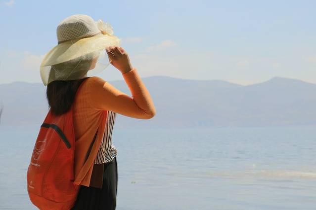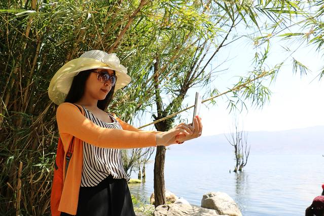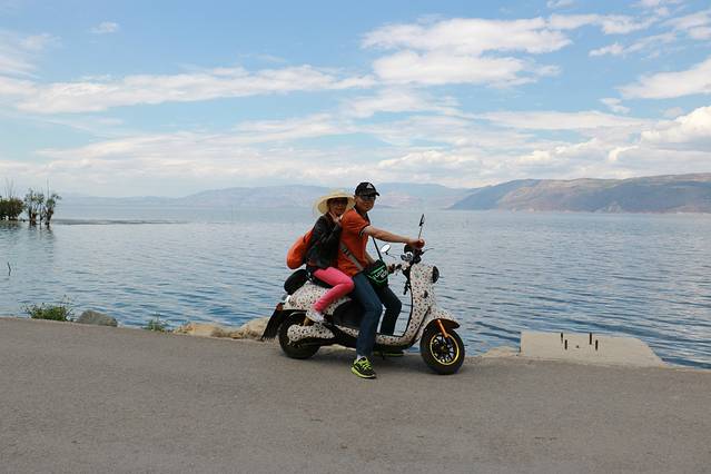 骑着车在洱海边荡漾。