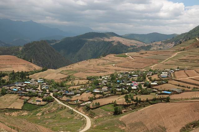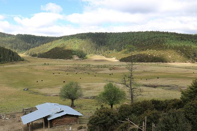 午饭后出香格里拉没多远经过小中甸牧场,下去拍了几张照,就是因为碰上干旱,花海没办法如期而至。