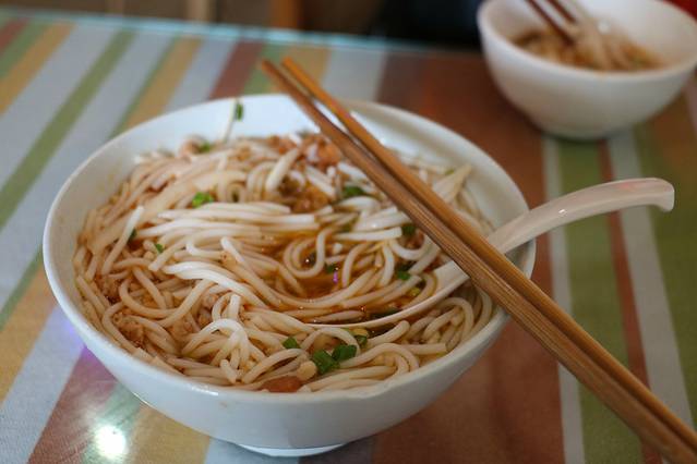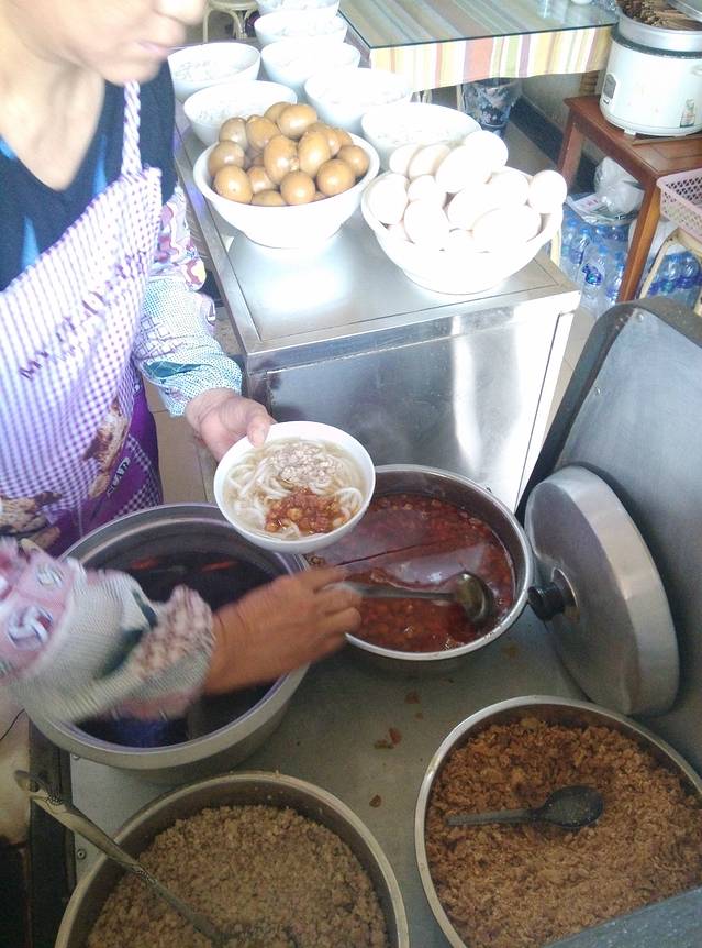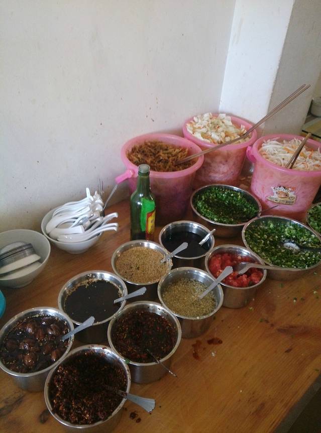 对了,光说这么多还没解决肚子。之前就想尝下传说中的大理饵丝,载我们的老板和老板娘也很热心,主动说带我们去这边下关一家蛮正宗的饵丝店,我们一开始还担心会不会被载去黑店宰客,他们讲一碗7元,我们就欣然同意啦。