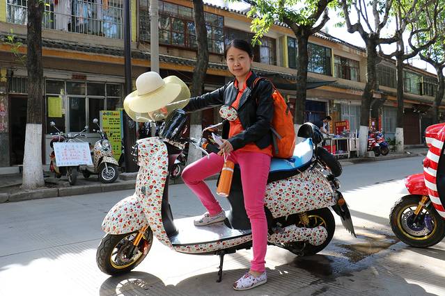我们的计划就是自己租辆小电驴,到处溜达。在古城里面有很多这种店,大致价格是大辆是80元一天(能跑80公里左右),小辆60元一天(能跑60公里左右)。我们就两对一起租了两辆小毛驴,还要押上身份证和200押金。拉风走起啦~~