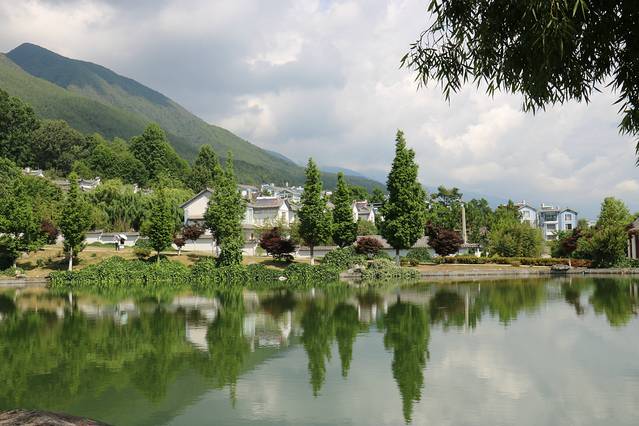 进入校园来到美丽的情人湖,旁边的白族民居很有特色