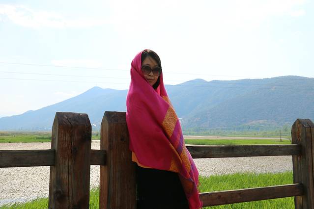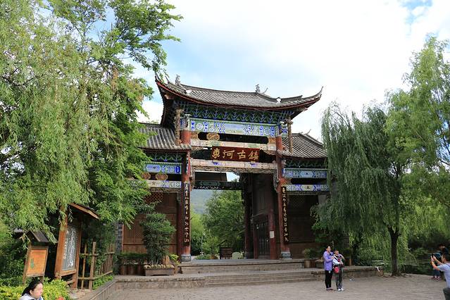 不过从古城到束河还真心不方便呐。公交木有直达,坐小面包包车都要三四十,后面两个人还有点精神,就选择坐11路公交车到束河路口下,再步行一公里到古镇门口。