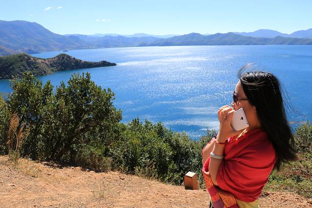 不得不再吐槽下这段路,真心坐得要崩溃了,不过更要感谢开车的师傅,毕竟8个多小时的路,我们坐车都这边累,何况他开车了。但是更真心想说的是,当踏进泸沽湖后,见到那绝美的景色,你所有的疲劳肯定一消而散,那种美就像人在画中的感觉,美呆了。