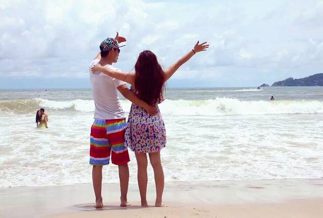 晚上了 我们去吃哈根达斯 去芭东海滩 酒店到海滩也就十分钟 我一直想去海边 这次是真的满足我的愿望了。谢谢老公。