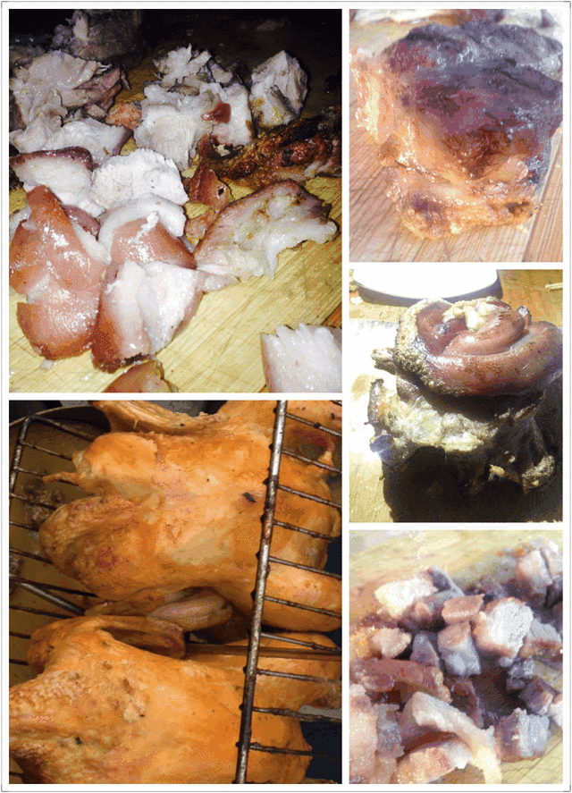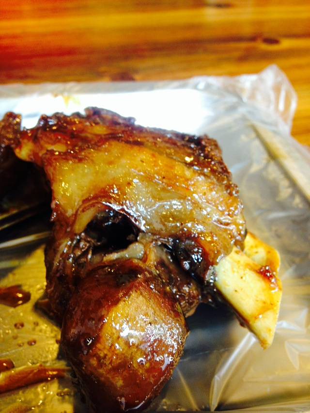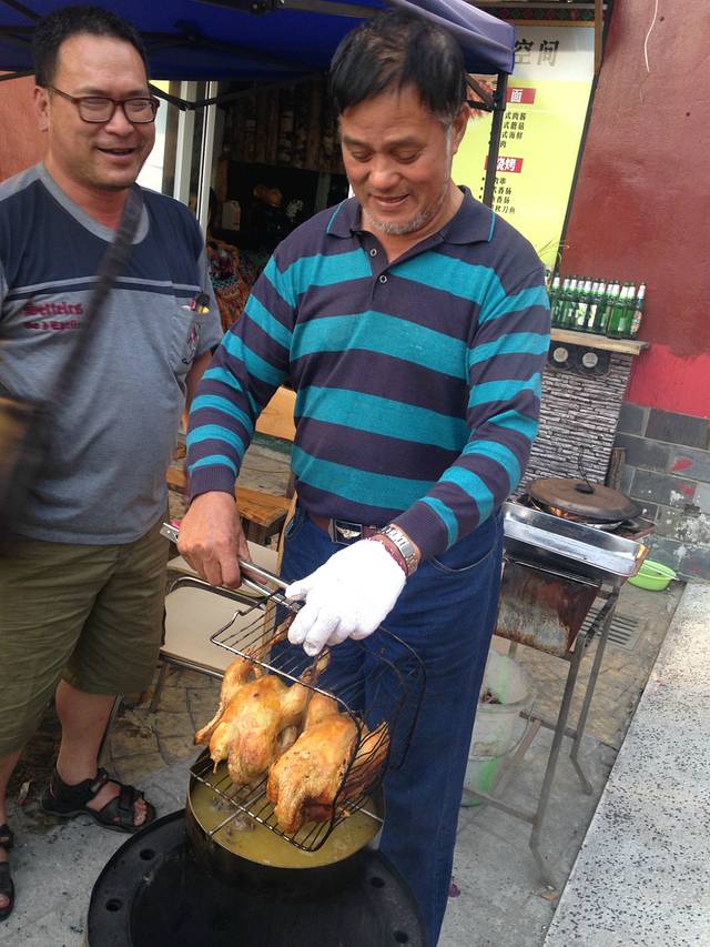 这个就是我们吃的肉肉!!!!只放了盐巴哦!!!原汁原味,下面会有一个盘子接烤肉烤鸡的汁,之后在吃肉的时候沾着这个汁吃,一级棒!