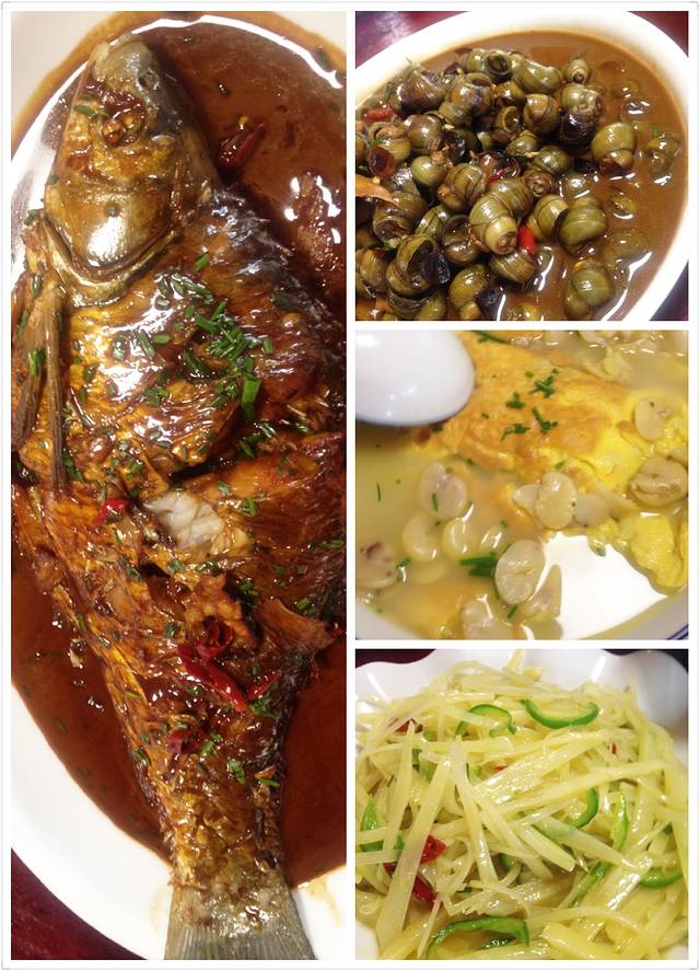 来的时候,很多农家乐都没有营业(非蟹期),但是他带我们直奔这家,老板娘说厨师不在,她自己做给我们吃,让我们看看有什么菜,随便点点吧。
