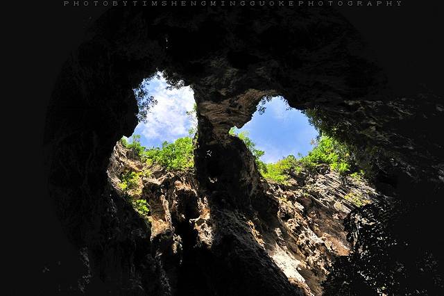首先看到的这座横跨头顶的“天桥”,其实就一道石梁,出现在2个塌陷的天坑之间,形成了一座天然无修饰的石桥,高高地悬挂在巨大的石洞穹顶,令人惊叹。