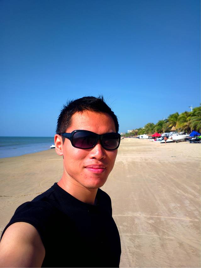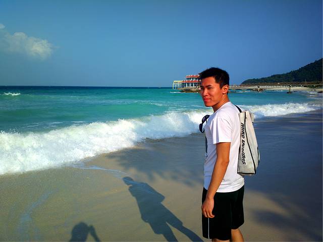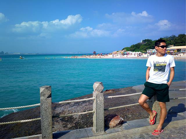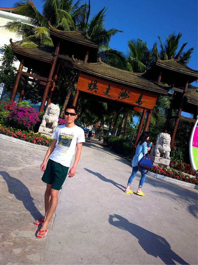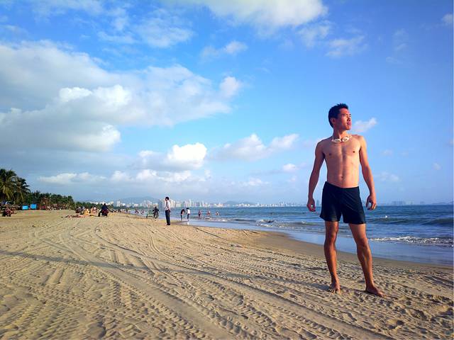 Tips:三亚天空经常万里无云,备好防晒用品,当地人多数穿着长衣服,要不就成我这样子,把人字拖得
