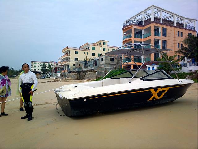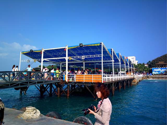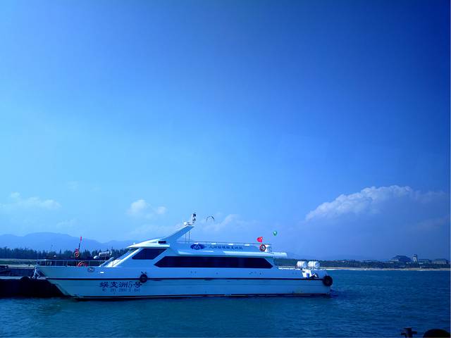 Tips:在码头坐小型游艇到达蜈支洲岛,全程15分钟,浪比较大,上船前不要吃太饱,可以备一些晕船