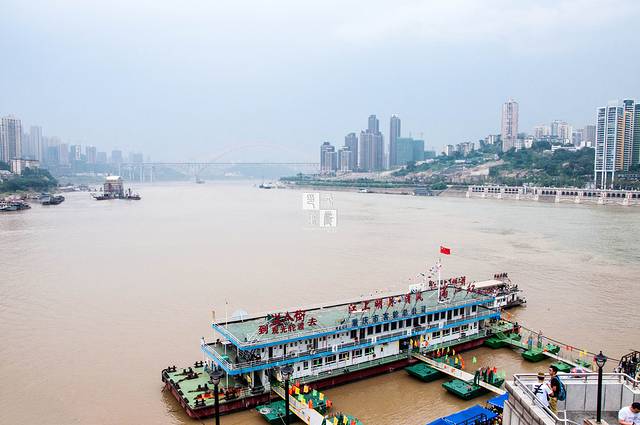 左边嘉陵江,右边长江,可以明显看出两江水的颜色不一样。