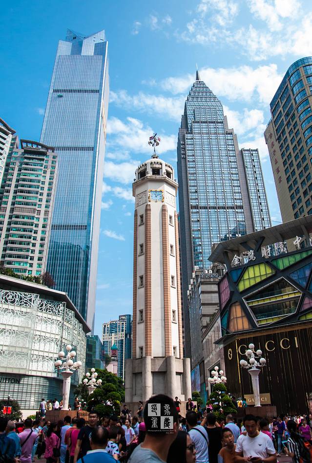 嗯,这种商业街也就去感受一下气氛就好,该有的成都都有,所以不是特别感兴趣。想象中的解放碑应该是很大很宏伟的一个碑,可实际体积比想象中小了不少。那人山人海,让我觉得没有拍照的欲望,于是也就掏出相机拍了张到此一游照,也算是来过了。