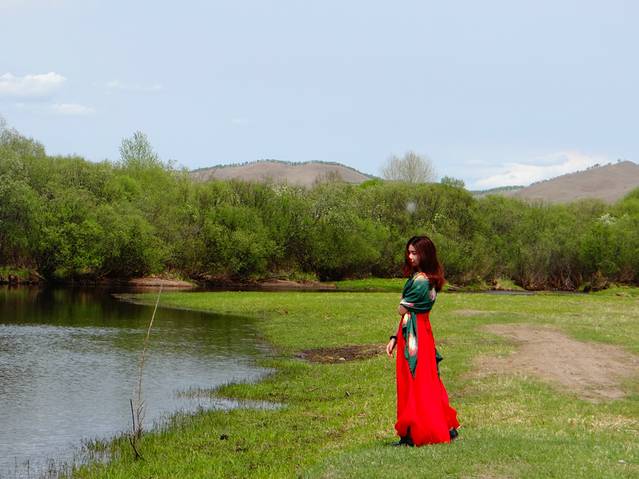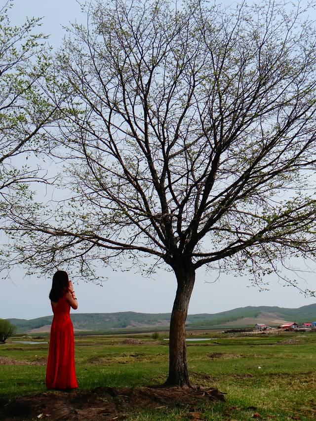 我们一路都是包车,路线是河包车师傅协商定下来的,相对比较随性自由~不过天公不作美,当天是阴天,所以整个人心情也没有很HIGH,加上五月份呼伦贝尔还没有很绿,似乎和期待中满片绿色有点差距~所以大家如果想看到漫山遍野满眼的绿,还是建议你六月中旬过后再来~另外身体上也有点不适应,喉咙发痛,痰都是黄色的,去药店买了紧急降火的药,吃了之后就好很多了~不过五月来的话住宿和物价都比较低,人也比较少,玩起来也是很爽的~到达满洲里的第一天我就来M了,所以真的身体在地狱……还好我这个人比较乐观,也特别喜欢旅行,不管风景如何,都尽量带着很好的心情~还有一件很棒的事情是我很喜欢拍照,刚好我们的包车师傅也很喜欢用单反记录点点滴滴,所以也帮我拍下了很多红裙子美美的照片~~这些都是日后珍贵的回忆。