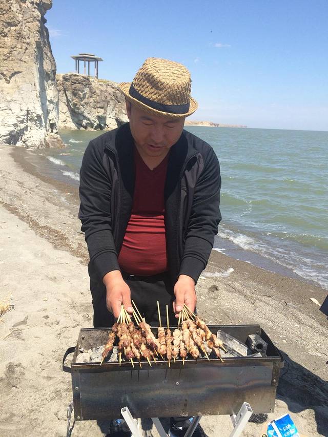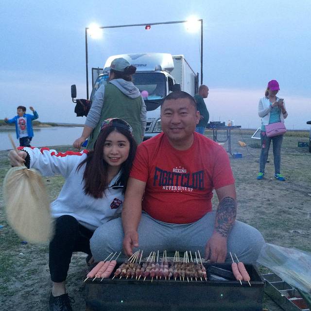 河边烧烤,这里的蒙古大汉真的好壮啊哈哈哈!到了晚上天有点冷,穿上大号外套哈哈哈~