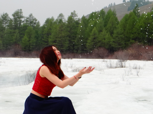 如果你很惊讶为什么有积雪我还穿这么少……其实这里温度很高,这样穿完全不冷,毕竟不是下雪哈哈哈~