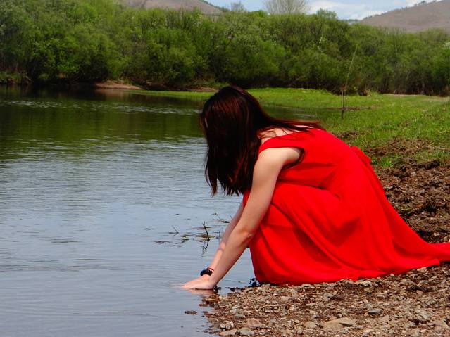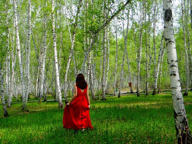白桦林和红裙子