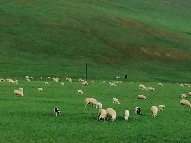 由于是行程的最后一天,下午还要赶飞机回北京,所以就开车四处看看走走,很幸运的是,今天的草好像一夜之间绿了,所以在临走前看到美丽的大草原,成群的牛羊还是感觉非常幸运。