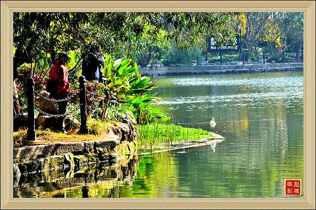 进了鲁迅公园到公园湖边,很远就看到一个白鹭。