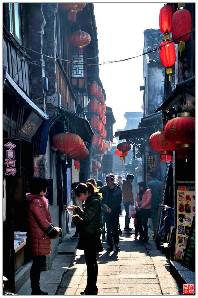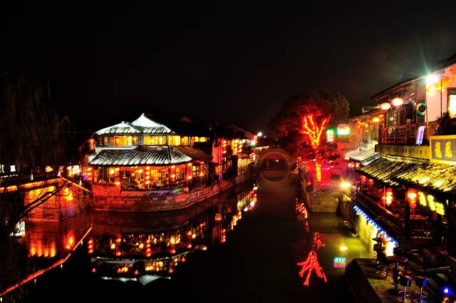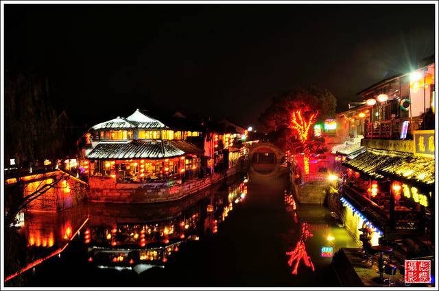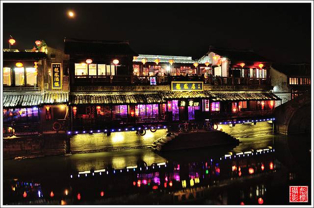 而在晚上,站在桥上迎着微凉的风,看两岸的大红灯笼,还有河里波光粼粼的倒影,这种水乡才有的美,只有身临其境才会有所感悟吧。