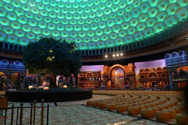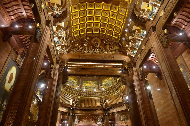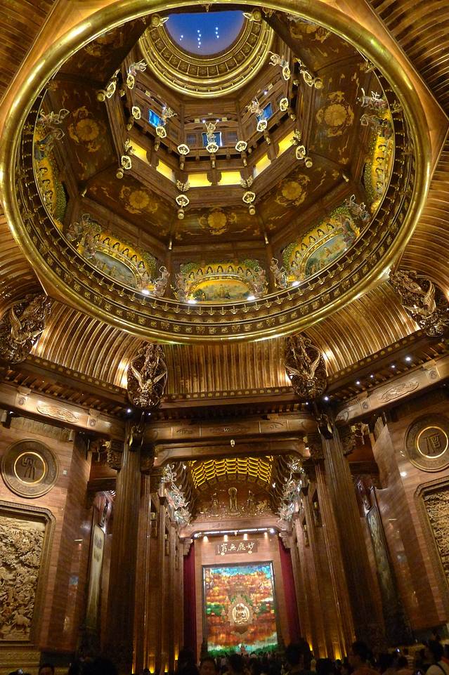 灵山梵宫的豪华令很多人瞠目结舌。在我看来,这是一个使用了西方大教堂包装,再加上东方的金碧辉煌以及高科技灯光秀的现代景点。