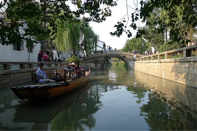 不用说,拙政园就更悲剧了,大门口到处是卖黄牛票的小贩。因为几年前去过拙政园,所以这次果断舍弃了,决定改乘手摇船畅游苏州河。