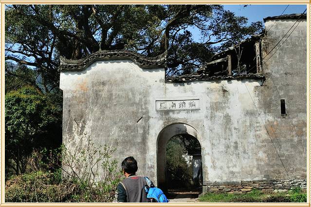 想走过祭酒桥,就得回到公路上。公路上桥头有一座亭子,亭内有“文昌阁"旧址,这是昔日察关学子寒窗读之所,可惜现在只剩下凉亭一间,虽有些破旧,但马头墙、飞檐、戗角、黛瓦仍彰显徽派气息。
