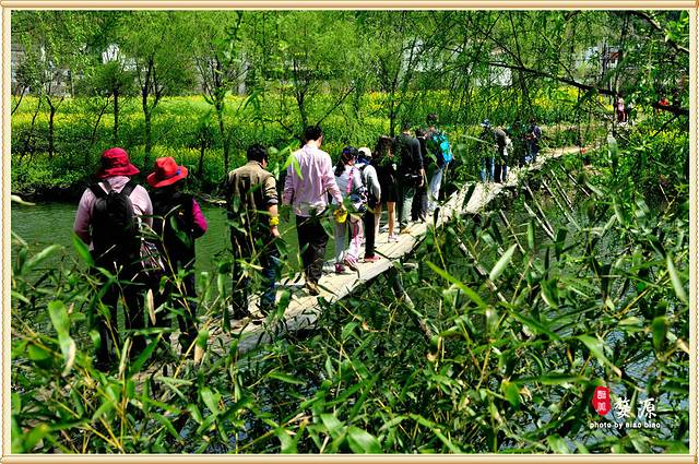 它的精髓就是这里有一片幽静的河面,河边有一片静静的草地,最吸引人的地方就是在这优雅的环境里,有一座长200米的板凳桥横跨h河上。