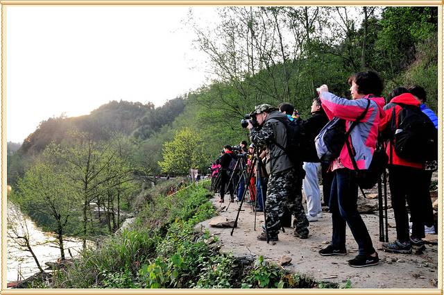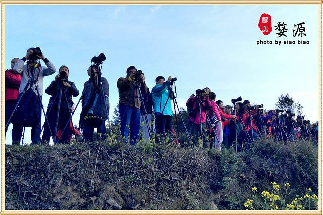 天刚亮,太阳正要升起,满山道上架满了器材,一个个齐齐卡卡的拍个不停-----