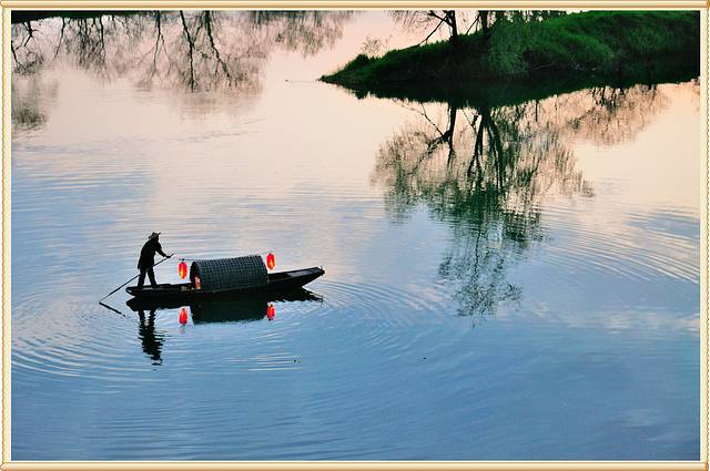 月亮湾在离开紫阳镇往东不远,到达李坑的半路之间,有一座狭长的小岛。小岛夹在两岸之间,形状犹如一弯月亮,这就是月亮湾。