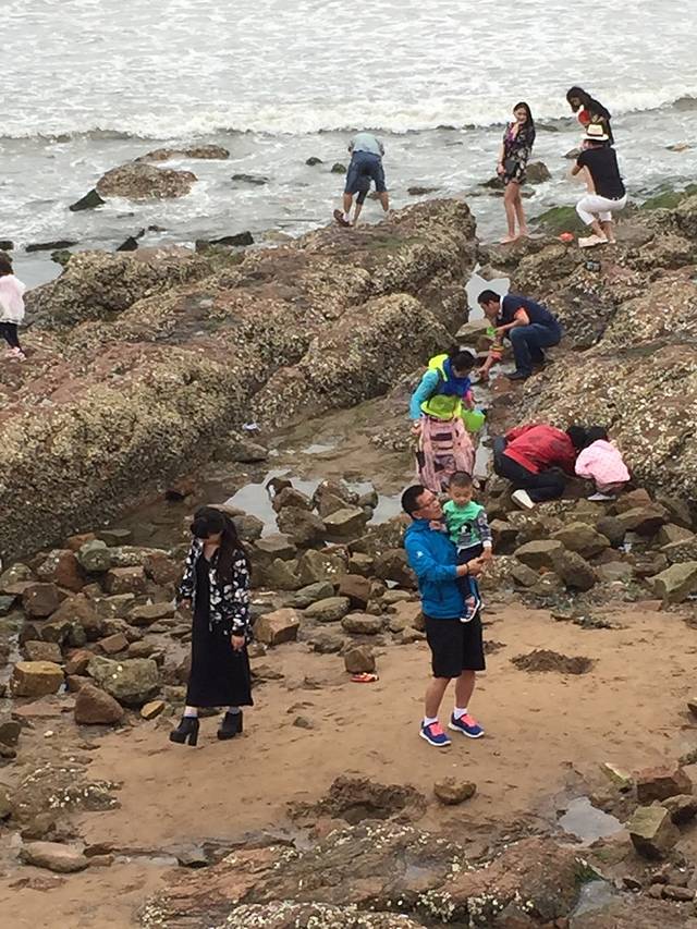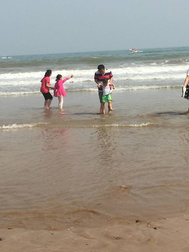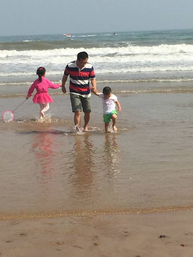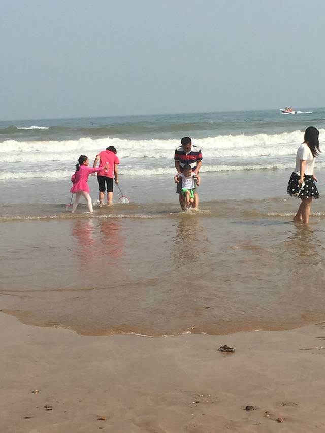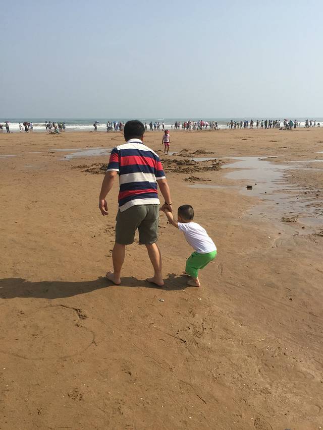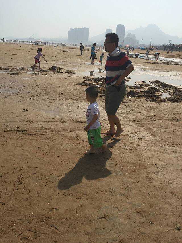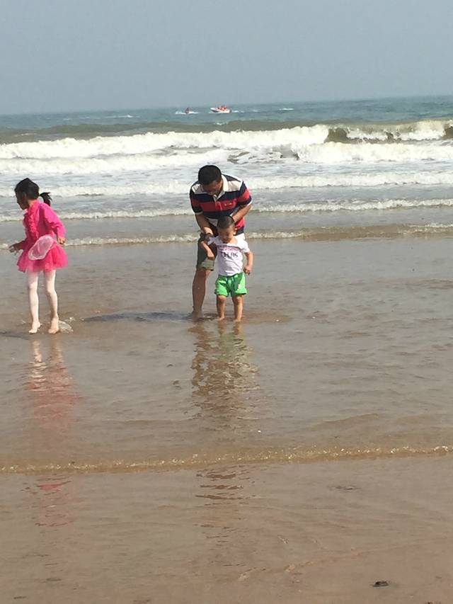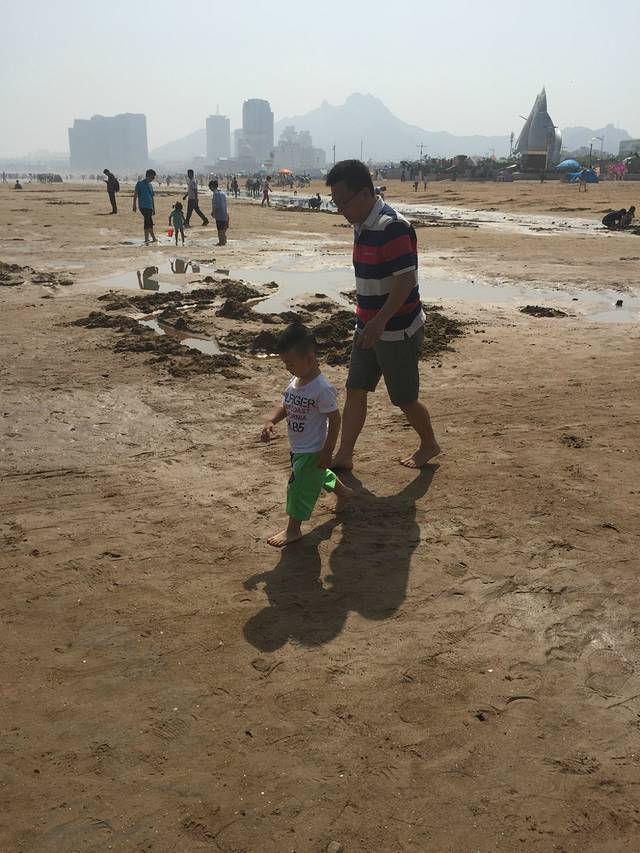 第一次见到大海的麦兜很是兴奋,自己就要往水里跑。石老人浴场很给力,有温暖的阳光,没有风,但是海浪很大。人也比预想当中的少。从酒店打车到浴场33元。