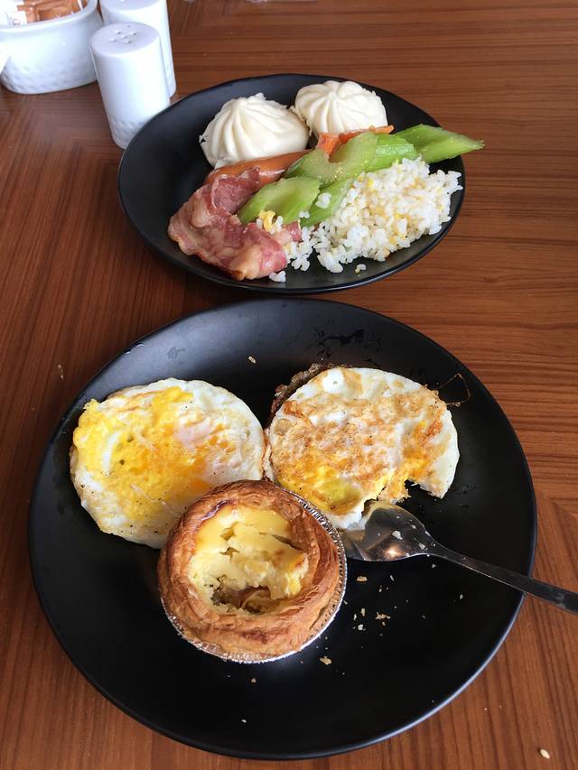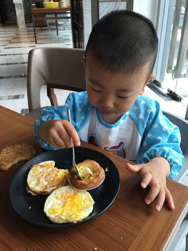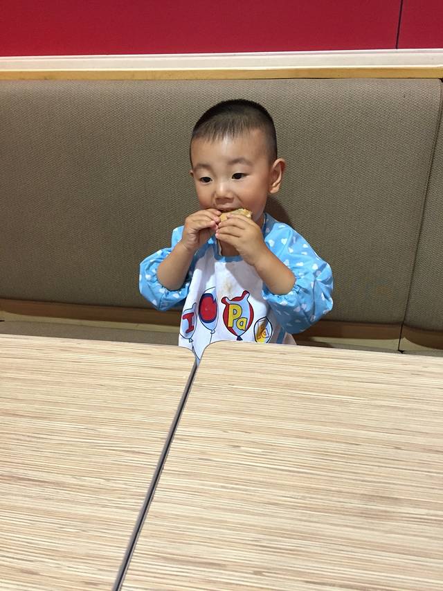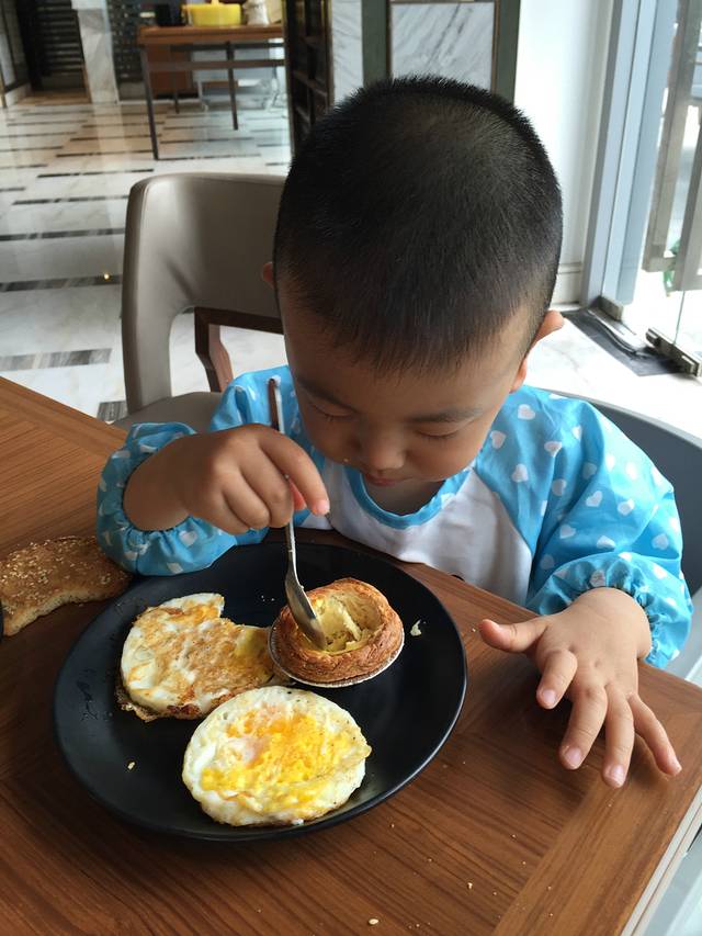 今天是麦兜妈的生日,早上在酒店餐厅吃了自助餐,麦兜吃得很开心。