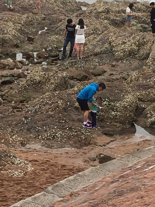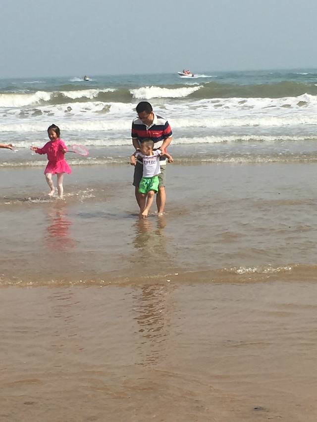 海浪过来了,爸比拎着走