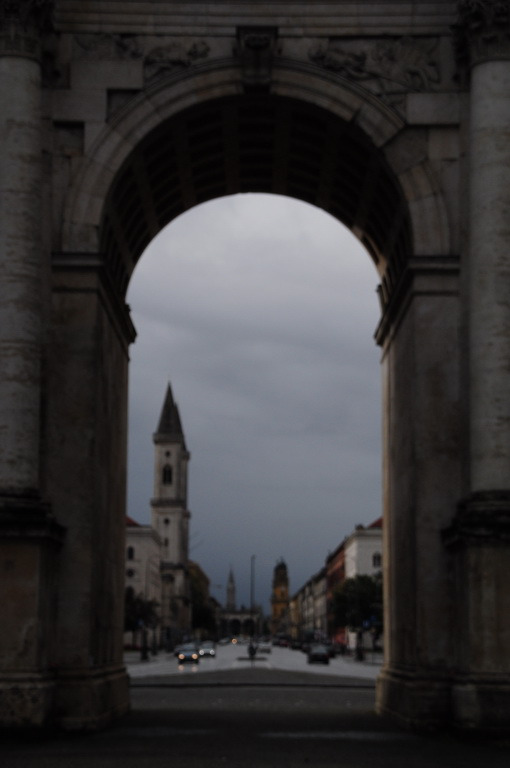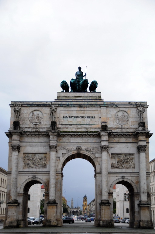 慕尼黑老城以外的道路都是四方笔直的,沿着Ludwigstri.(路德维希大街)朝北望,不远处就能看见凯旋门,