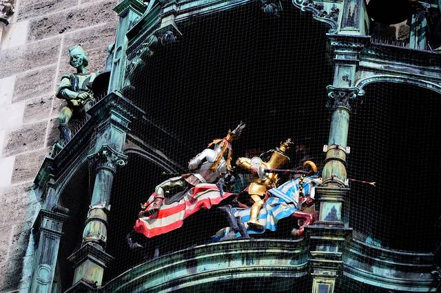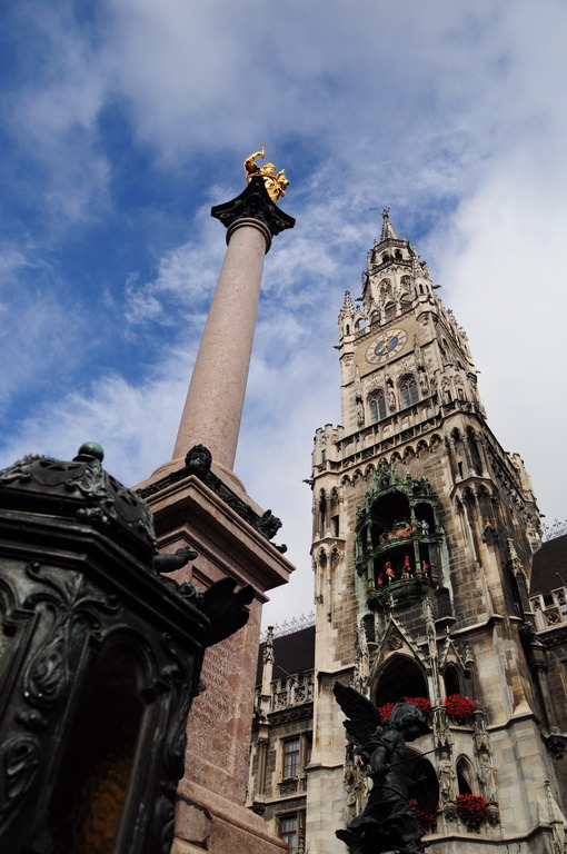 玛丽安广场是慕尼黑老城的中心,刚从地铁站出来,抬头就可以看到雄伟壮丽的市政厅,
