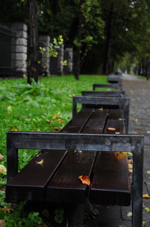 昨夜下了一场雨,草地上湿漉漉的,清晨的公园里只有出来遛狗或跑步锻炼的人,