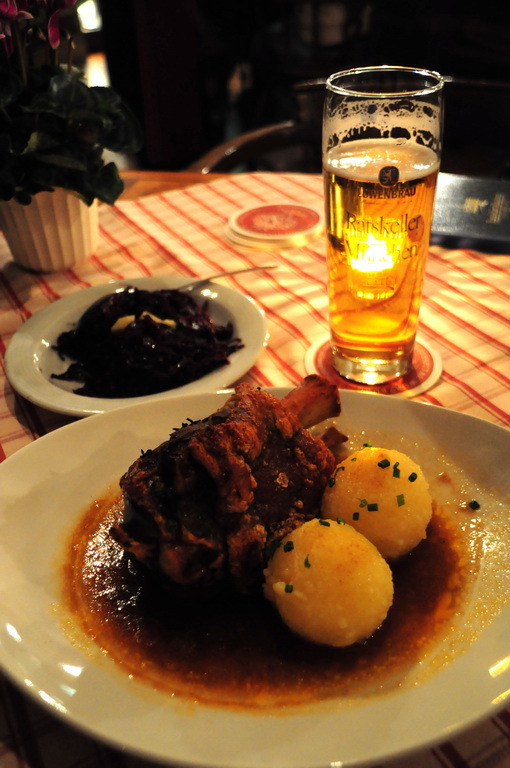 终于可以饕餮一顿了,我点了久闻大名的Schweinshaxe(烤猪肘),17.5欧,