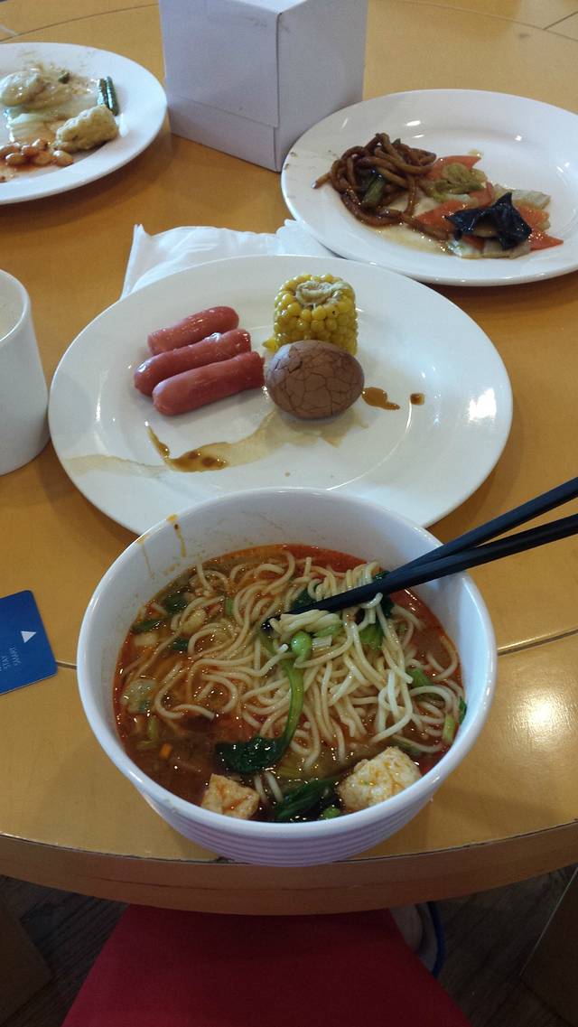 第二天早上差不多9点左右我们就起床洗漱好先去酒店一楼吃早饭,智选的早饭还算是丰富,当然跟我们酒店比差了一些,毕竟洲际是五星,智选是三星半,不过还是可以了。煮了一碗面,完全吃不习惯啊,哎,当时好想回四川,回成都吃一盘火锅。