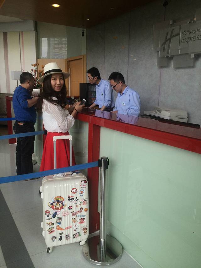 这一晚上是我们拿积分兑换的,所以是免费的,节约了一晚房费。这都要归功于我们平时的辛勤工作积攒下来的积分,旅行的时候就派上用场了,也是第一次享受到了作为酒店人的福利。这是在前台的时候salsa给我照的,不得不说上海的酒店是比成都的牛逼,由于职业习惯,喜欢比较各大酒店的员工,客人以及装潢设备等。就这么一个三星半的小酒店前台小哥的英语都倍儿棒,北方智选居然有一半的客人都是外国人或者会说英语的中国人,这点让我确实很佩服。