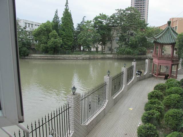 我深深地记得我在都江堰住的汉庭可比上海这个大很多,难道上海连锁酒店房间就是没得成都的大?事实证明还真是,第二晚住的智选假日让我确定了这个事实。(后面再提)由于当晚太累,没有照房间,洗了澡凌晨三点才入睡,还好床很大,很软,让我们算是睡了个好觉。第二早起来拉开窗才发现,房间外面有条河,这样看着让我和salsa的心情算是好了很多。起来收拾好了12点多就退房了,然后去楼下找了个理发店洗头,吹了个发型就去吃饭了,为了图方便,我们就在我洗头的那个理发店旁边的小饭馆吃了一顿。
