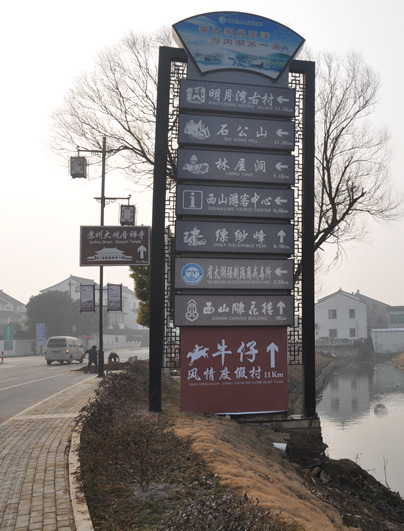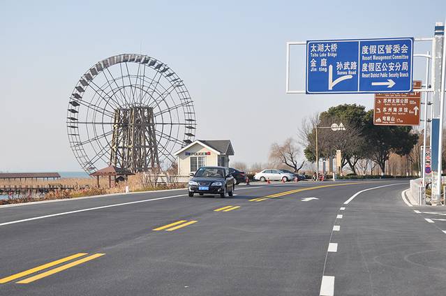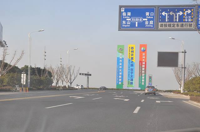 从苏州到西山(现在改名叫金庭了)全程大约是60公里左右,我们沿着吴中大道一直到太湖边,右转进入环太湖大道——沿太湖过太湖大桥(共三座)—金庭(西山)。