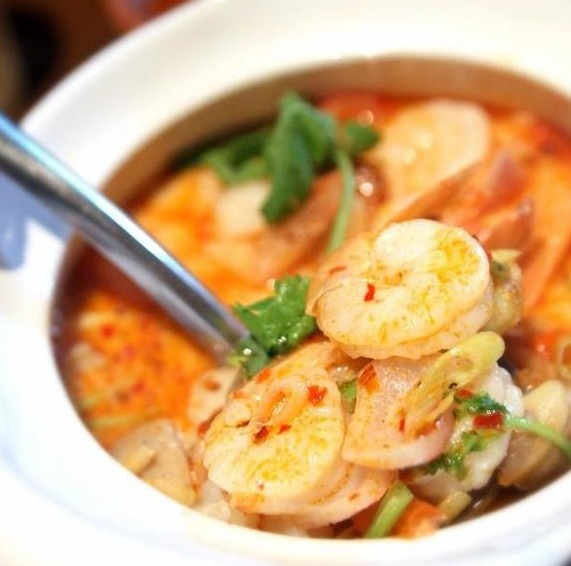 Kum Poon是一家比较有特色的正宗泰国美食菜馆,里面随便点什么都很好吃,而且也比较便宜,服务态度也不错,所以综合下来,如果要推荐,我们一定首先就推荐它。我们当天去的时候人不多,所以都不用排队,我们点了店里的绿咖喱鸡、烤牛肉、青木瓜沙拉、海鲜炒粉、冬阴功汤、柠檬草汁、椰子冰激凌,都很不错。