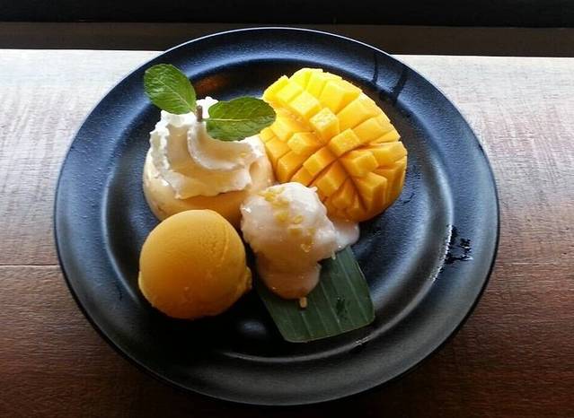 介绍正餐之余,我不得不提提甜点,曼谷的甜品都非常不错,不管是街边的推车饮料,还是甜品店的精致小点,都非常实在。可能因为曼谷属于热带,所以鲜甜味美的水果种类非常多,也非常好吃,Mango Tango就是一家专门以芒果为主题的甜品店,他家的甜品都是用非常新鲜的芒果做成,有着非常天然的清新芒果香。