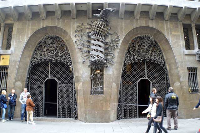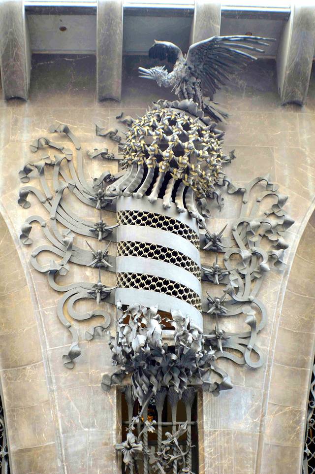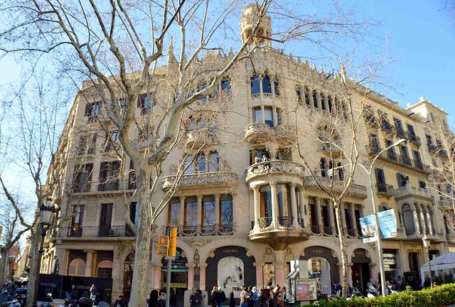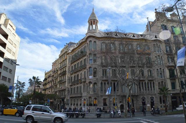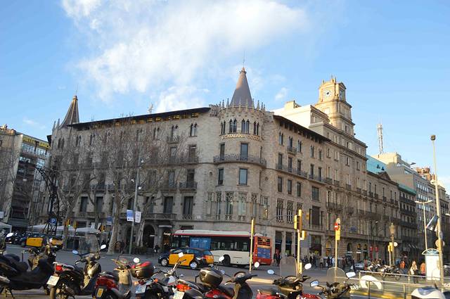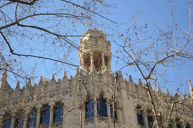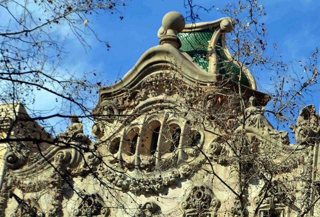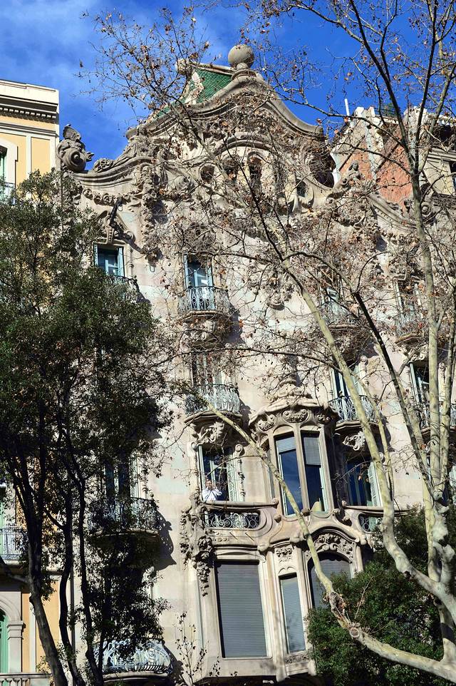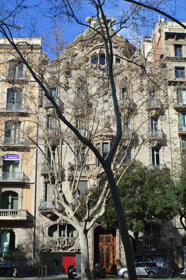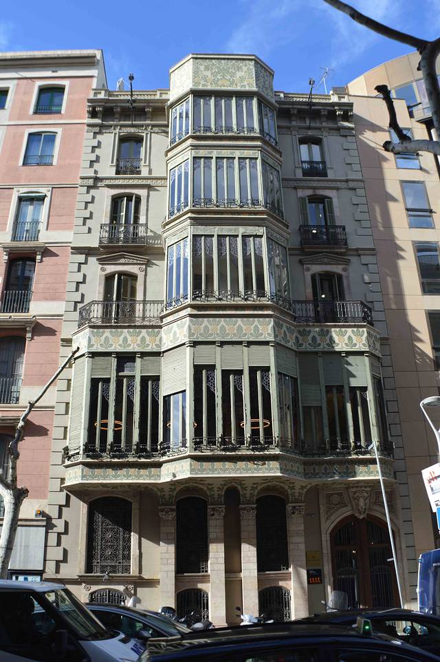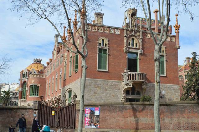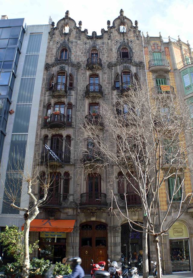 这一幢我吃不准是不是高迪的作品了,看风格是百分百的高迪。那屋顶,窗口包括下面的大门,都是缩小版的“巴特略之家”。不过即便不是高迪作品,也同样是一座漂亮的加泰罗尼亚现代主义建筑。