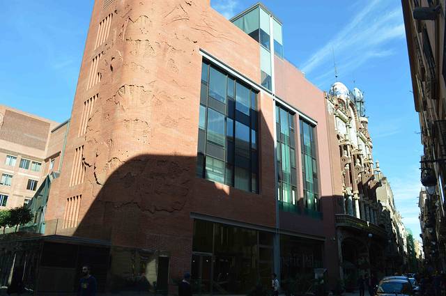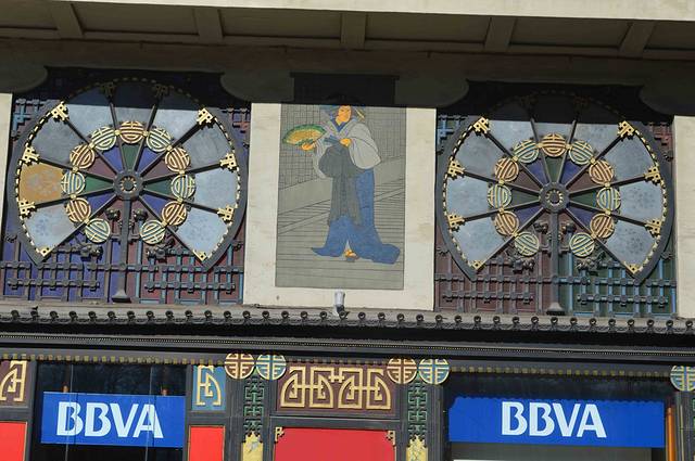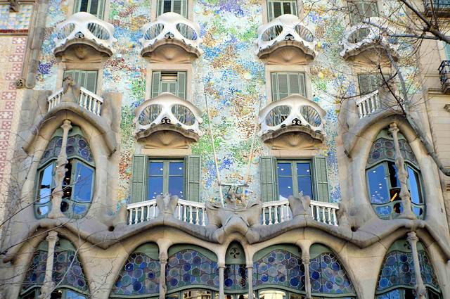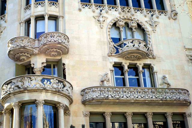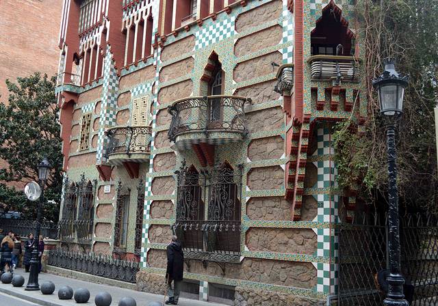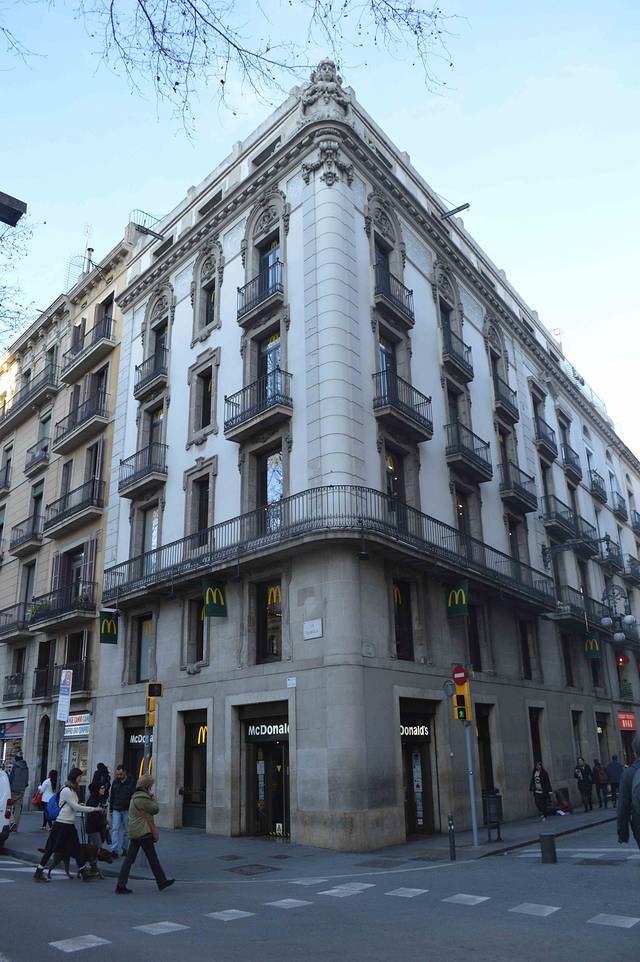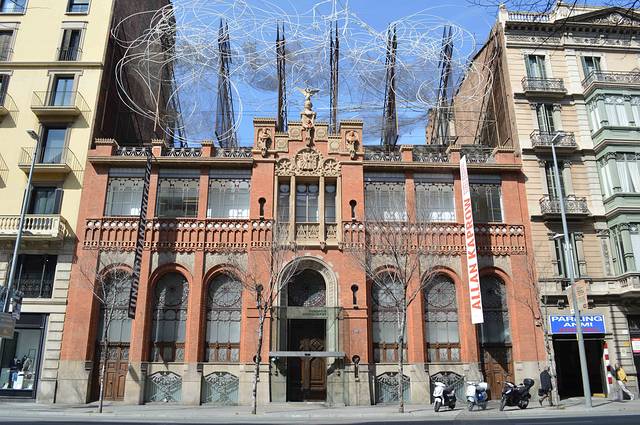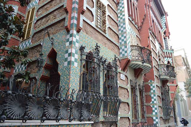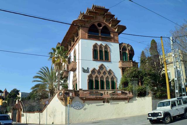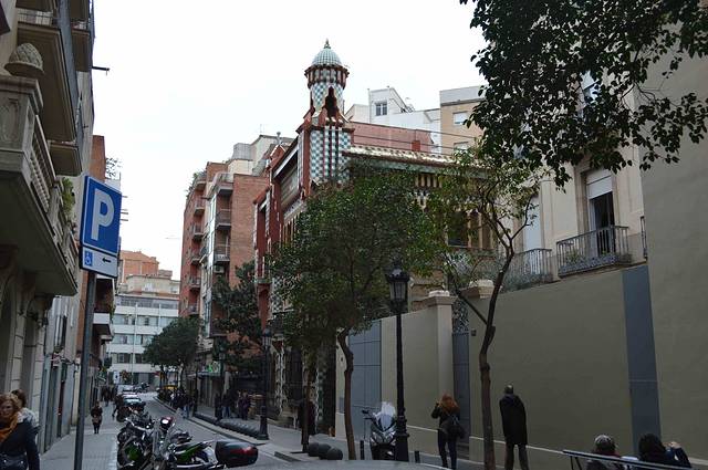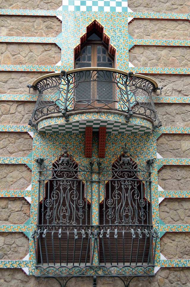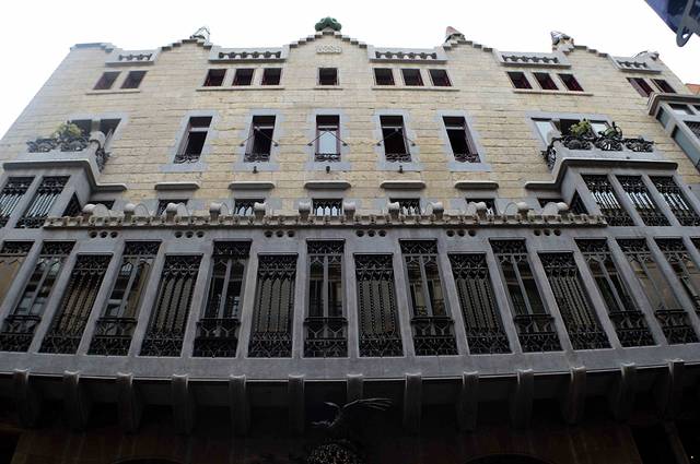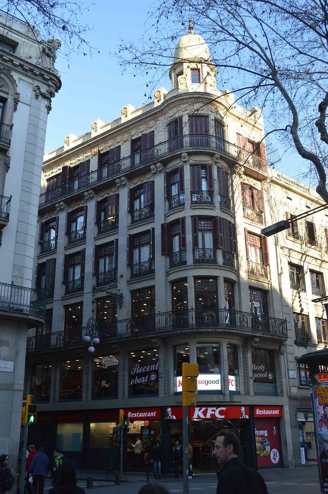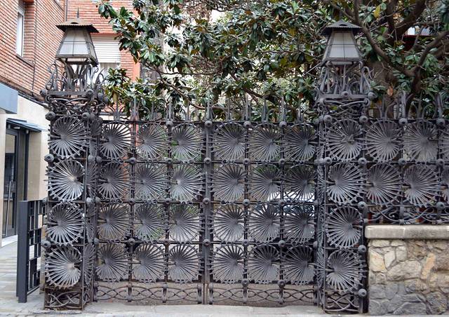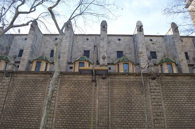 这一幢我吃不准是不是高迪的作品了,看风格是百分百的高迪。那屋顶,窗口包括下面的大门,都是缩小版的“巴特略之家”。不过即便不是高迪作品,也同样是一座漂亮的加泰罗尼亚现代主义建筑。