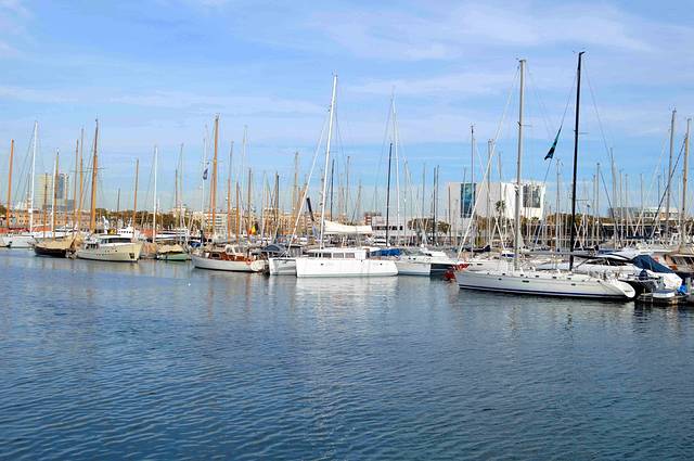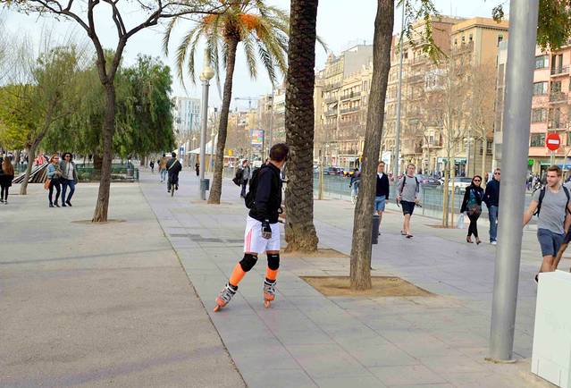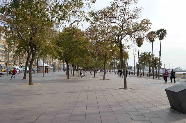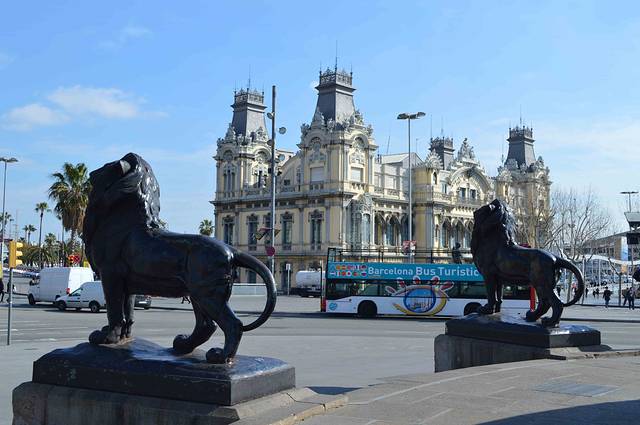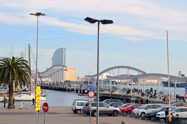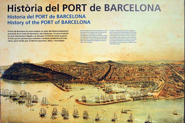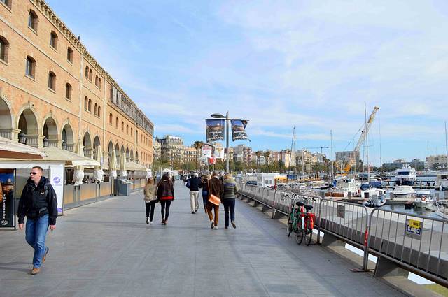 首先我们从兰布拉大街的滨海段出发,沿着巴塞罗纳旧港往东南方向走。沿途一边是碧蓝的海水,一边是古老的大厦 - 我称它“巴塞罗纳的外滩”。