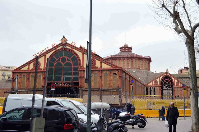 在国内很有名气的 La Boqueria 盖伯利亚市场,其实并不是最大的,也不是最干净的,更不是最便宜的。只是地段比较好。这个好像也是个著名的市场,目前正在维修。无论从建筑形式或是面积,都要比盖伯利亚市场气派。