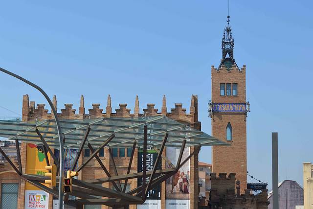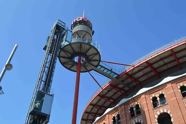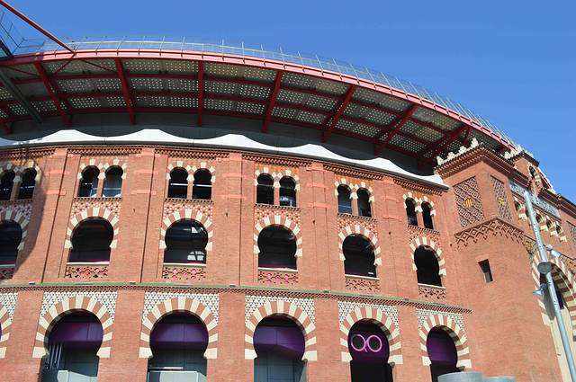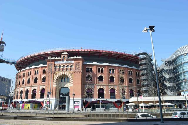 Les Arenes bullring 的外形有点像罗马竞技场,但是看了门窗细节后就发现,它们全是科尔多瓦清真寺的拷贝,是摩尔式。现在该斗牛场已经改建成了一个大商业中心,外面还有观光电梯直通楼顶。而楼顶上都是优雅的餐厅,客人可以边用膳边欣赏巴塞罗纳都市美景。