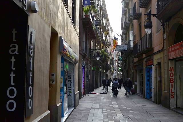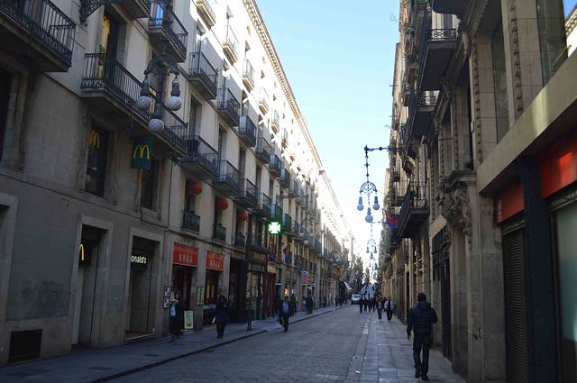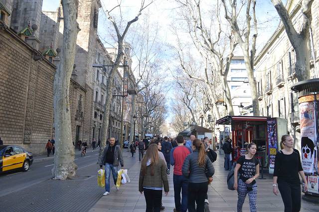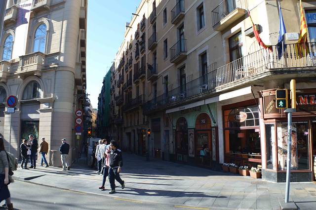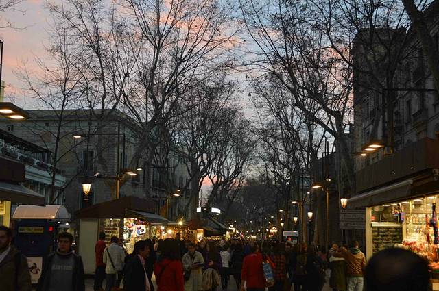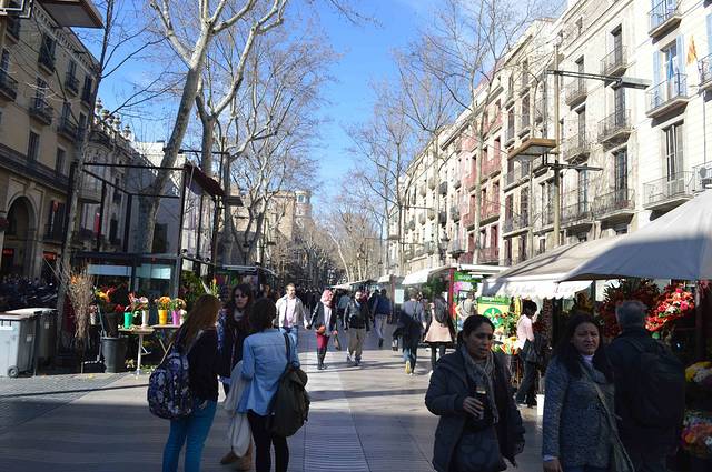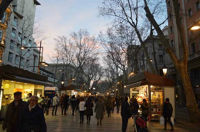 公寓就在著名的 Rambla 兰布拉大街 Liceu 剧院的后面,是巴塞老城“哥特区”。放下行李上街吃饭,9 - 10点钟是西班牙人的晚饭时间。吃完饭就在 Lambla 兰布拉大街上闲逛。