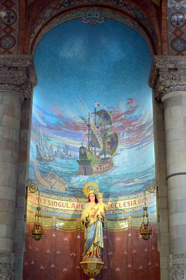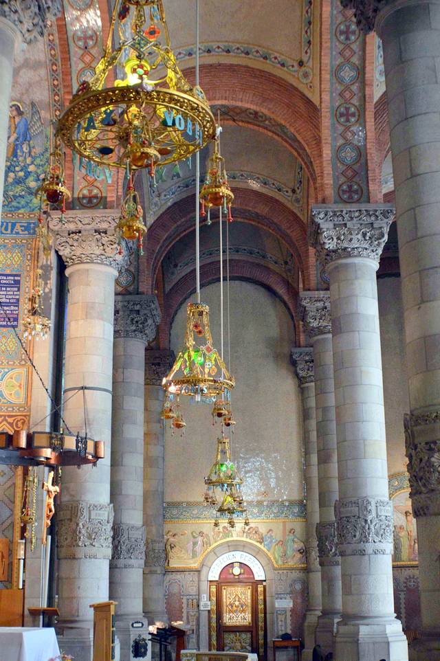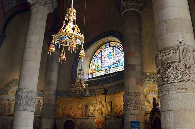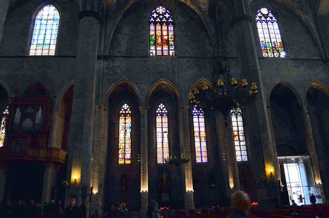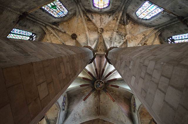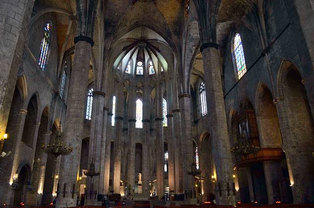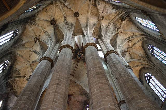 这座具有加泰罗尼亚风格的哥特建筑有一个雄伟的正殿和28座偏殿,它们列于支撑天花板的梁柱之间。这些梁柱高约30米。