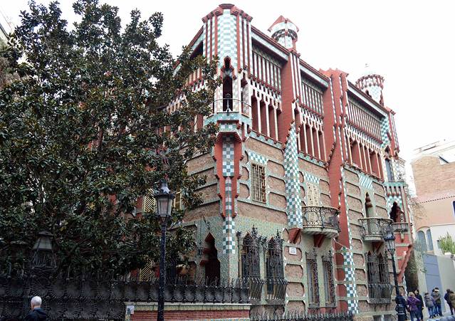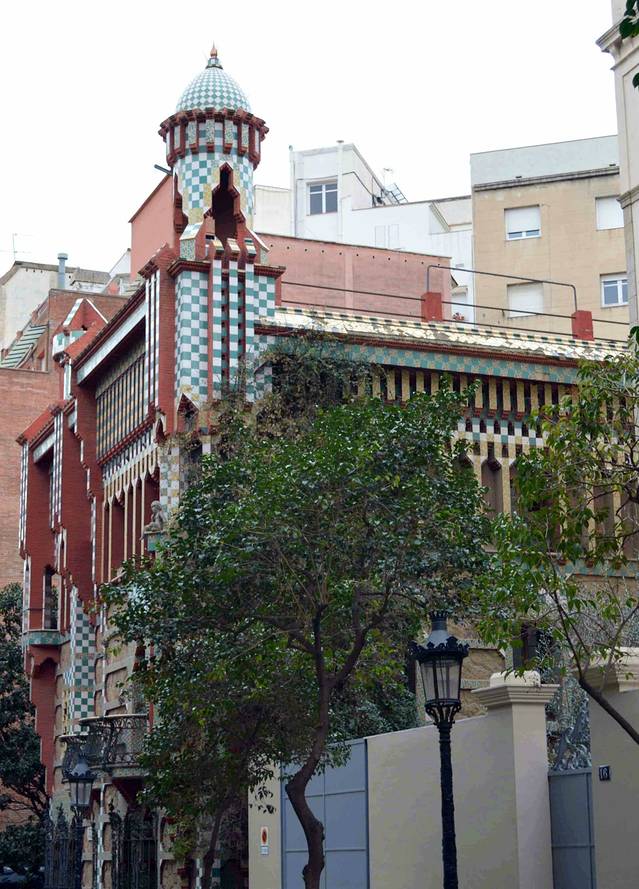 文森斯之家(CASA VICENS)(1883-1888),属于世界遗产。在格雷西亚区,好像是私人住宅不让参观。但在门口有一小布告,当天晚上府上有音乐会,可以购票,这倒是个参观的好机会。可是布告上没有网址,不知道怎么订票。