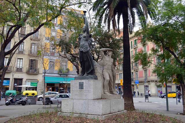 广场中心的喷泉由Josep Maria Jujol设计。中间雕塑有三组,各有其象征意义,不过代表什么和我们没太大关系。
